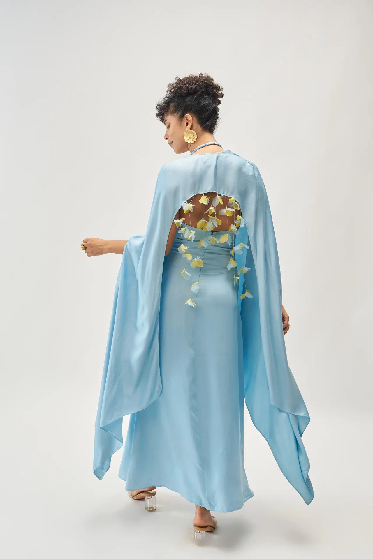 Elevate your summer style with our one-of-a-kind satin shrug, featuring a chic back cut-out adorned with resham thread fringes and delicately laser-cut organdy petals. Each piece is hand-dyed and embellished with small beads, adding a touch of luxury. Perfect for beach outings, honeymoons, or any vacation, this unique shrug offers both elegance and flair, making it an essential addition to your resort wear collection.
